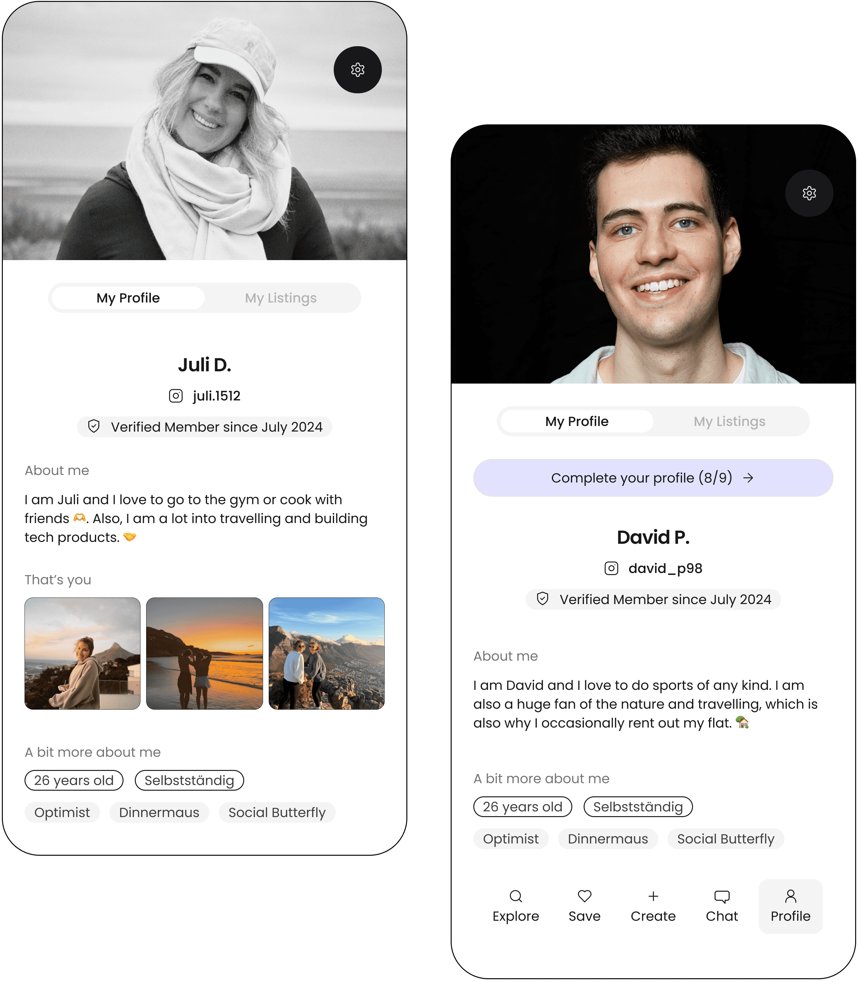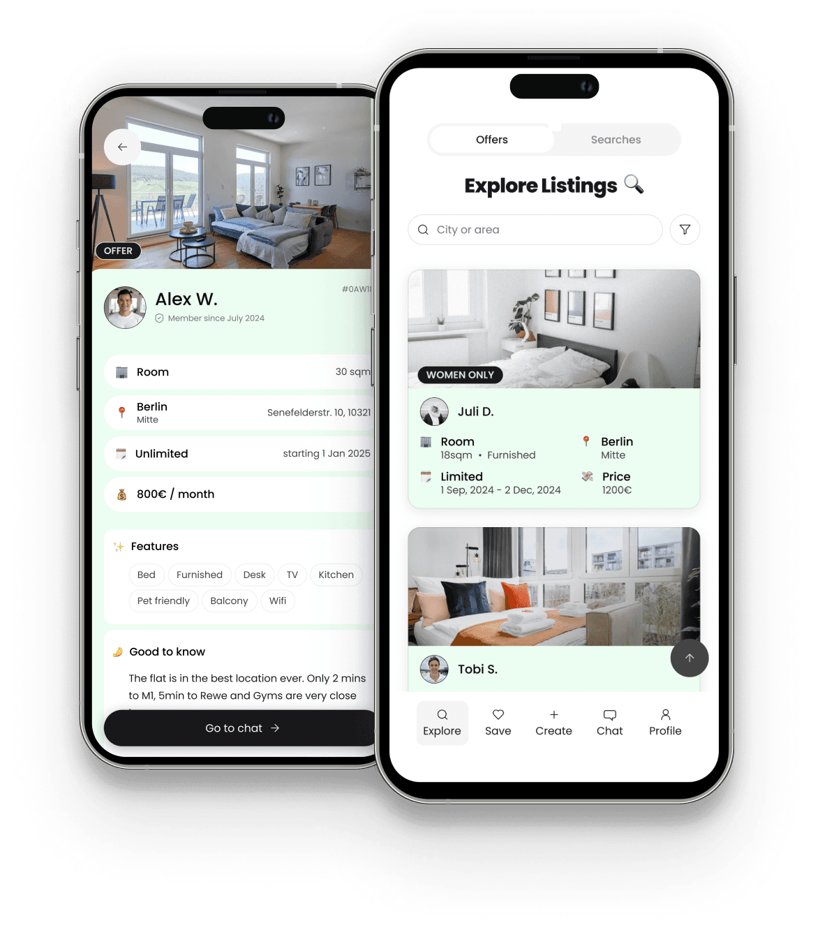 If you're offering a place, create a listing by entering infos and pictures about your room or flat. If you're searching a home, create a listing by entering infos and pictures about yourself. Both types of listings will be live on the platform.