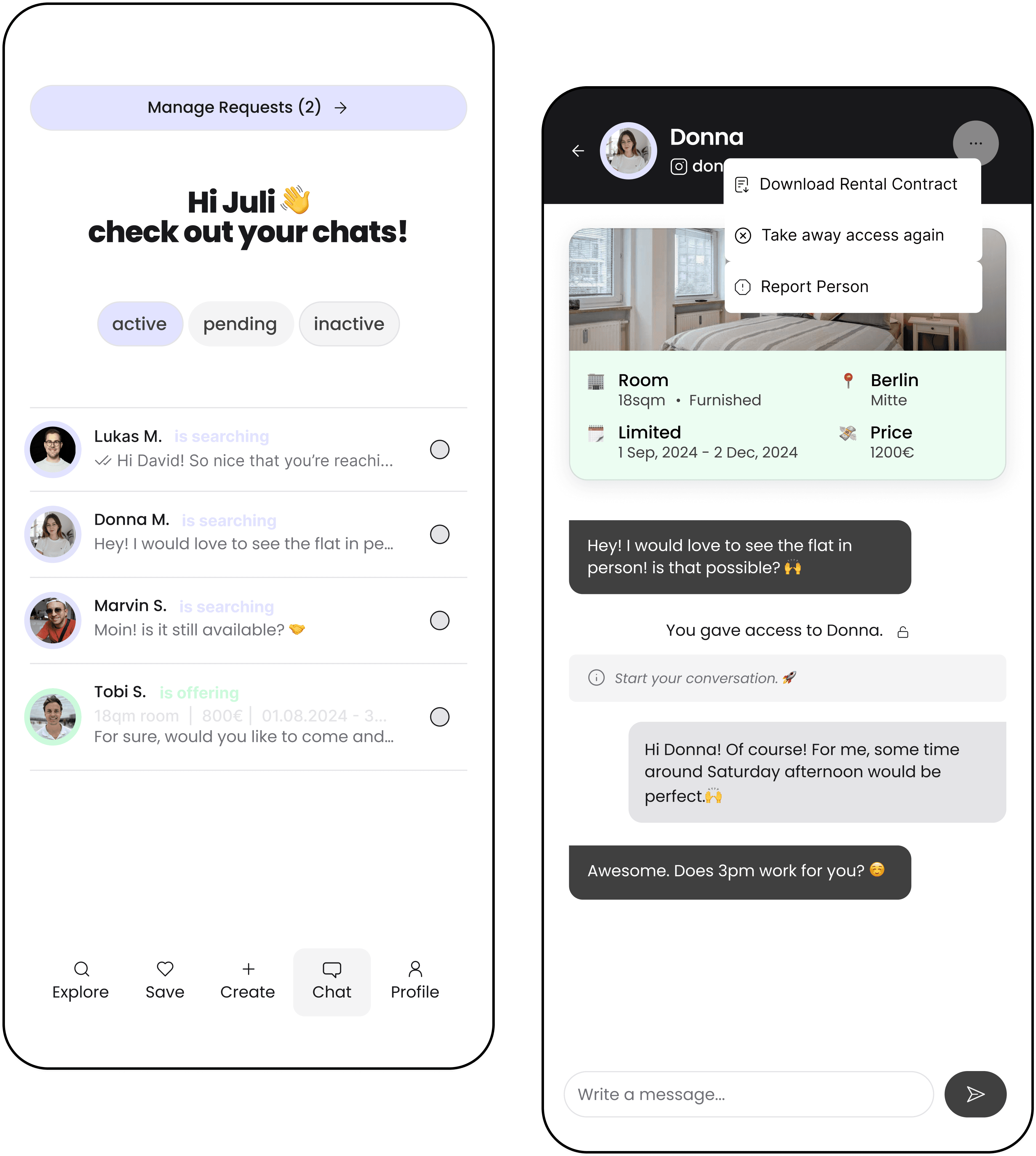 Check out whoโs interested and accept or deny access to all infos and pictures of your in-app listing.